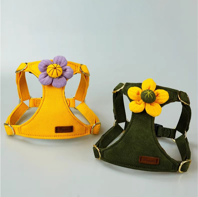 胸元の愛らしい花がアクセントとなり、お散歩時の注目を集めます。