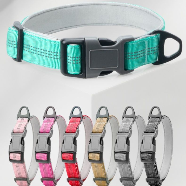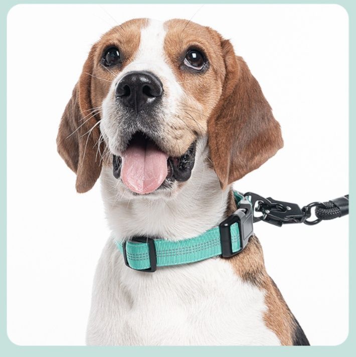 サイズ調節可能なバックル式で小型犬から中型犬まで幅広く対応します。