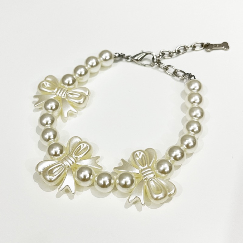 犬猫兼用で使える上品なペット用首輪です。真珠調のビーズと可愛らしいリボンが特徴で、 日常のお散歩から特別なお出かけまで幅広くご利用いただけます。 快適なフィット感と上品な見た目で、大切なペットを華やかに演出します。 サイズ調整可能で、どんな子にも合わせやすい仕様です。